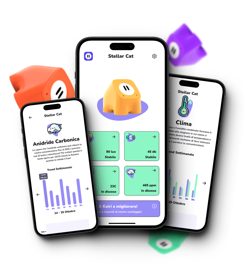 Kairi monitora il tuo ambiente autonomamente, ma l'app ti offre un accesso più approfondito e personalizzato ai dati raccolti.